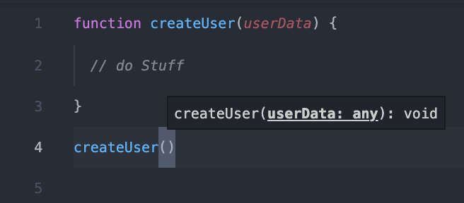 Here’s a simple example. Let’s say we have a function called createUser() in our app. This function may look like this: